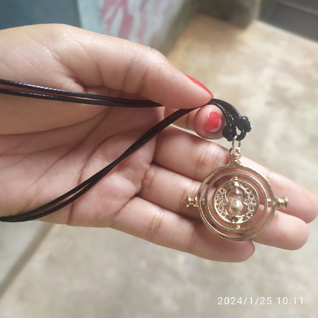 Inspirado no acessório icônico da saga Harry Potter, este colar ampulheta combina elegância e magia, perfeito para fãs que desejam carregar um símbolo marcante da personagem Hermione.