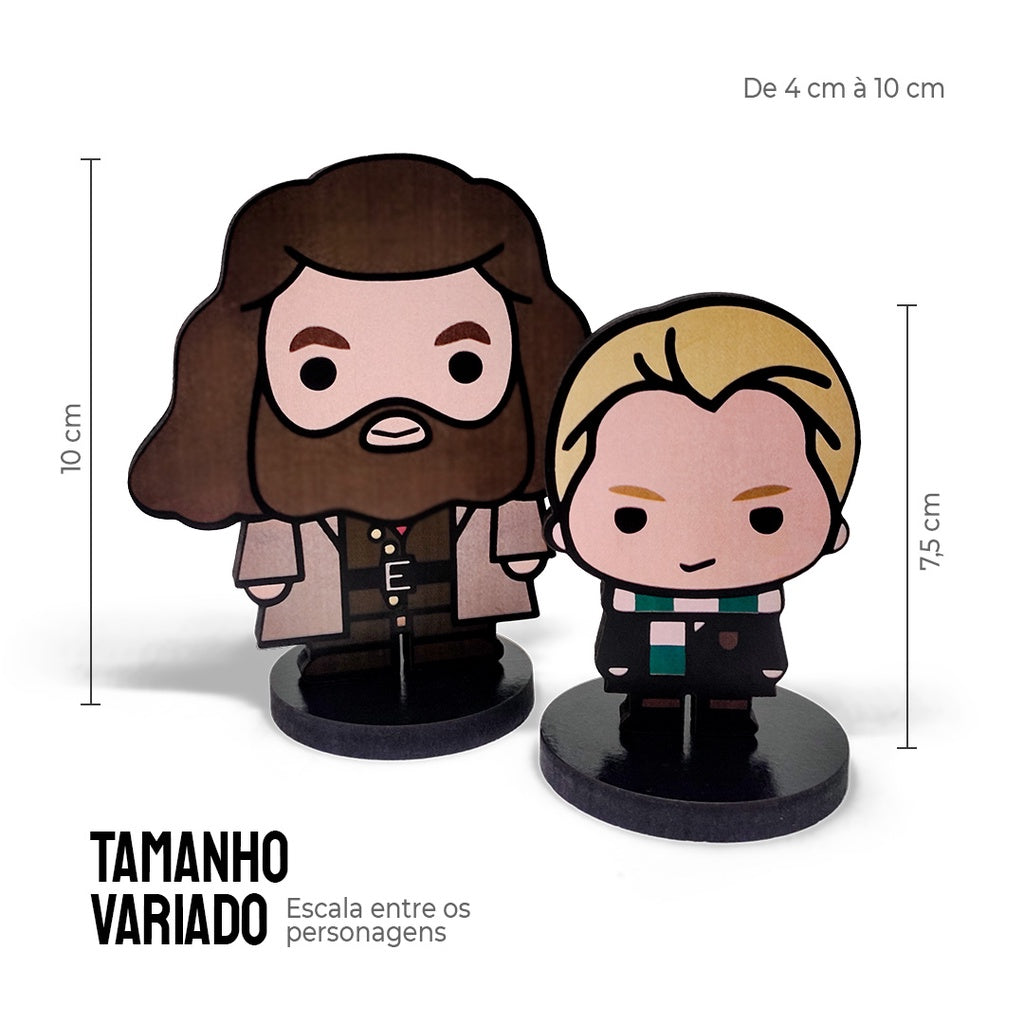 Coleção completa com 7 figuras detalhadas dos personagens mais marcantes da saga. Perfeito para fãs que desejam decorar, colecionar ou presentear com magia.