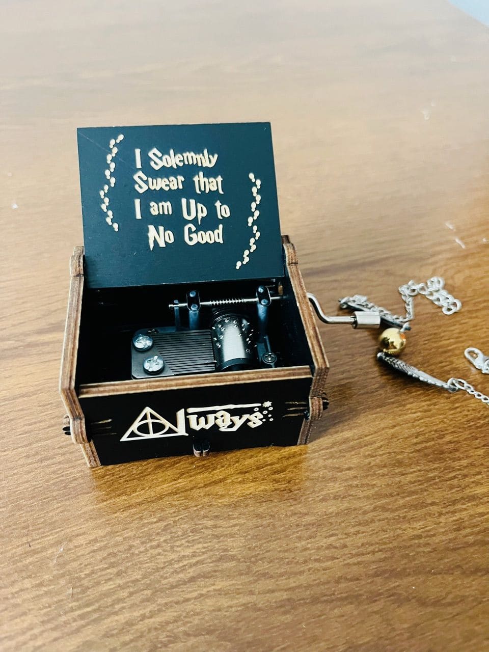 Conjunto encantador para fãs de Hogwarts! Inclui pulseira temática e caixa de música retrô com manivela, que toca a clássica melodia de Harry Potter. Perfeito para colecionar ou presentear.