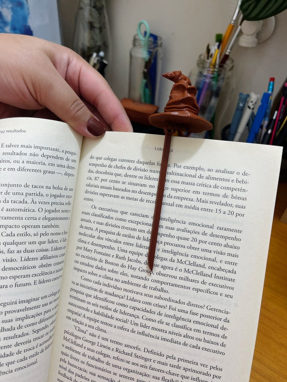 Adicione um toque mágico às suas leituras com este marcador inspirado no Chapéu Seletor. Ideal para livros, revistas e cadernos, é perfeito para fãs do universo de J.K. Rowling.