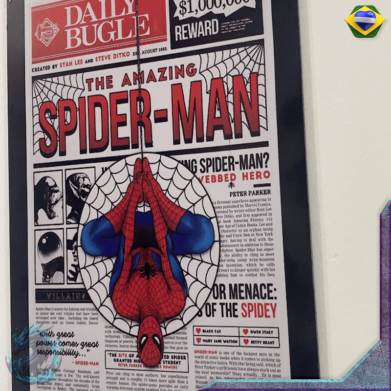 Decore seu ambiente com estilo geek! Este quadro do Homem-Aranha traz cores vibrantes e design incrível, perfeito para fãs da Marvel que desejam dar um toque heróico à decoração.